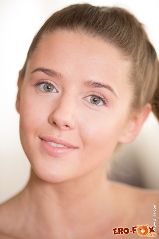 Уже спустя несколько минут с начала фото сессии, красивая девушка сняла прозрачные трусы и лифчик, продолжая позировать голой. В обнаженном виде модель с упругой грудью располагается на кровати, где оттопыривая сочные ягодицы прогибается раком, а раздвигая промежность подробно засвечивает бритую письку с волосами на лобке.