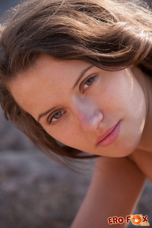 Сексуальная девушка позирует на пляже обнимаясь с большим камнем. Красотка снимает купальник и оставшись голой эффектно демонстрирует свои упругие формы на камеру. Особенно привлекательными кажутся небольшие, но подтянутые титьки брюнетки.