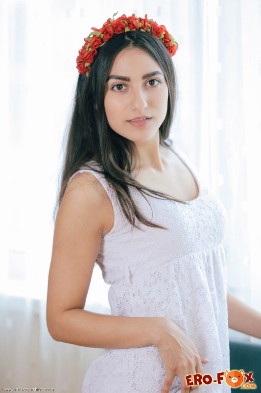 Вернувшись домой после покупок, очаровательная брюнетка с шикарной попой в белом платье, вскоре разделась и голая позирует перед камерой. В обнаженном виде худенькая девушка присаживалась на пол и стул, где подробно показывала маленькие сиськи с бритой писькой и упругие ягодицы на сочной попке.
