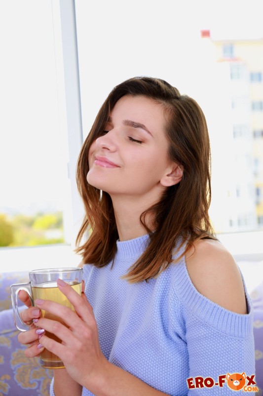 Устроив дома откровенную фото сессию, сексуальная девушка с милой внешностью медленно разделась и голая красуется перед камерой. Оказавшись полностью обнаженной, красотка с худенькой талией показывает сиськи с возбужденными сосочками и гладко выбритую письку, параллельно поглаживая животик руками.