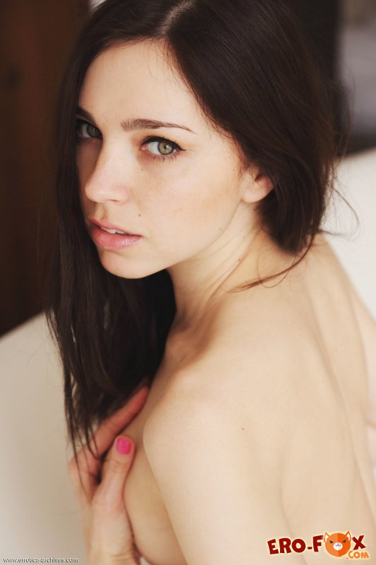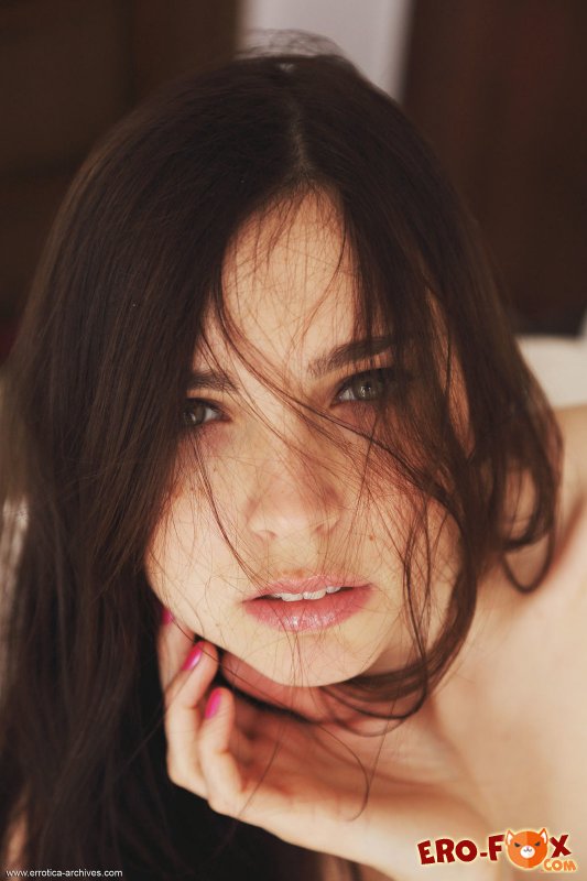 Обворожительная голая брюнетка лежит на диване красуясь перед фото камерой которая снимает для нас каждый сантиметр упругого тела девушки. У красавицы действительно есть на что посмотреть - шикарная грудь, подтянутая попка и прекрасная бритая киска, девушка просто бесподобна...