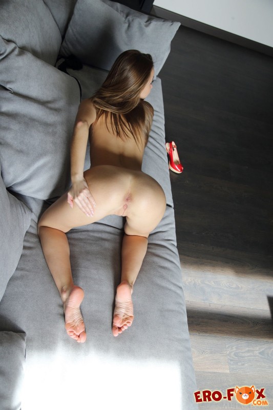 Надев туфли и привлекательное черное боди, красивая блондинка со стройной фигурой начинает эротично позировать на съёмной хате перед фотографом, в процессе располагаясь на диване и медленно оголяясь. В обнаженном виде стройняшка с плоскими сиськами чаще всего грациозно прогибалась раком и оттопыривала упругую задницу, где так же виднелась бритая возбуждающая писька.