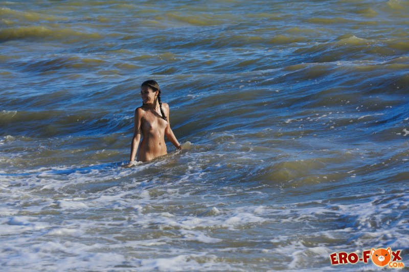 Медленно сняв с себя купальник, милая модель с худенькой фигурой начинает эротично позировать на пляже, порой забираясь в океан. Таким образом молодая стройняшка с плоскими сиськами подробно демонстрировала подтянутую задницу и гладенькую письку с бритым лобком, параллельно мило улыбаясь и ощущая удовольствие.
