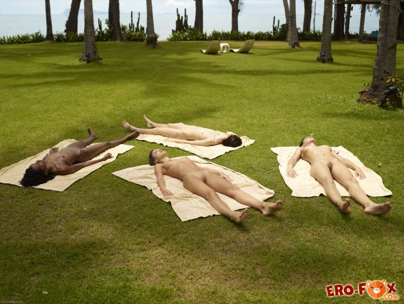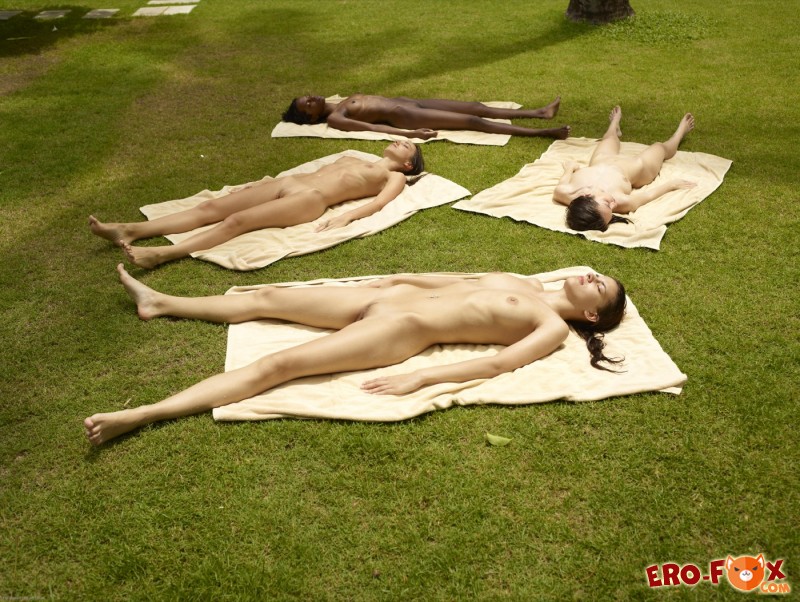 Эротика » Голые девушки » Голые девушки загорают в парке на лужайке