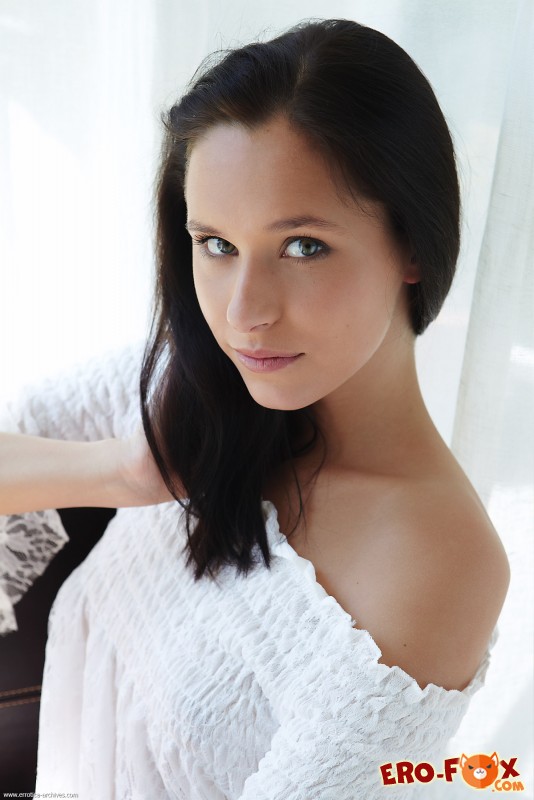 Устроившись на стуле и скинув с себя остатки одежды, грациозная деваха с сексуальным телом широко раздвигает ноги и засвечивает бритую письку с манящей щёлкой между половых губ. А поджимая ноги и присаживаясь на корточки, стройная брюнетка обхватывала маленькие сиськи руками, не в силах сдерживать возбуждение.