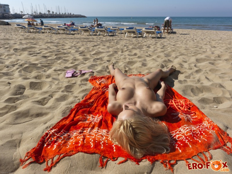 Эротика » Голые девушки » Светловолосая нудистка наслаждается солнцем на пляже