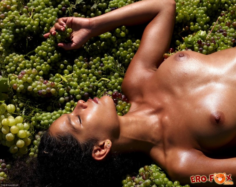 Эротика » Голые девушки » Загорелая француженка позирует голой на винограде