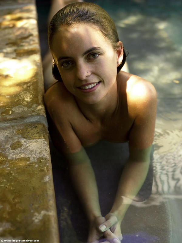 Миленькая молоденькая девушка с худенькой фигурой и волосиками на лобке и письке, купаясь в бассейне, старается максимально расслабленно эротично позировать. В будущем выбираясь с воды, стройняшка с маленькой грудью присаживалась на ступеньках у дома и нежно поглаживала себя руками.