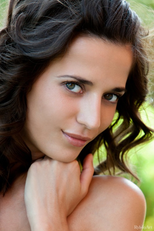 Расположившись во дворе загородного дома, полностью нагая брюнетка с длинными красивыми ногами, лёжа на траве, демонстрирует сексуальное тело и нежно поглаживает себя руками. Порой, сладко улыбаясь, так же красавица откровенно показывала бритую письку с гладким лобком и возбуждающую попку, от которой сложно оторвать взгляд.