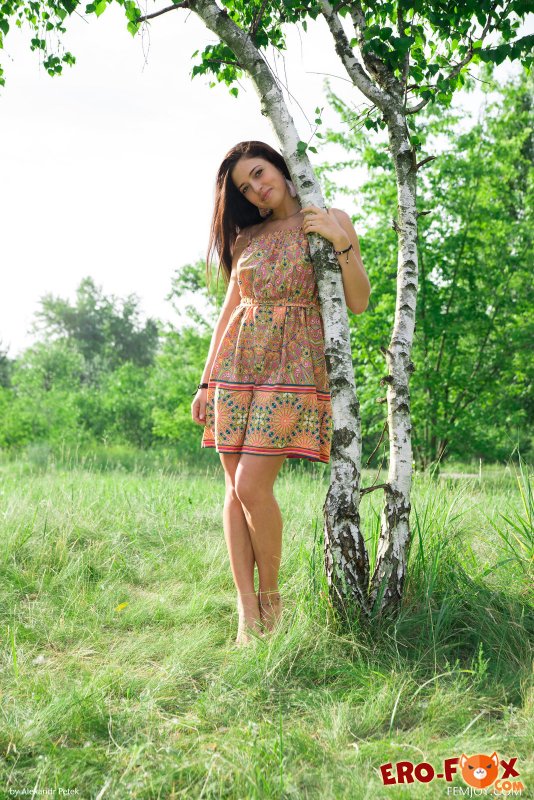 настоящая русская красавица разделась в травке под берёзой и голая продемонстрировала все свои прелести. А посмотреть у неё есть на что... Это и пышная грудь и попка с аппетитными ягодицами и бритая писька, всё это девушка покажет нам в самых горячих позах.