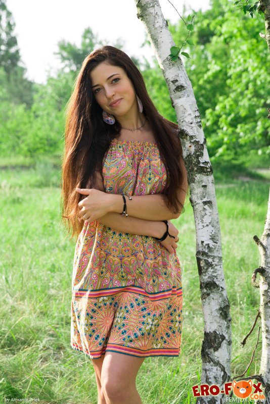 Эротика » Голые девушки » Голая русская девушка на траве под берёзой