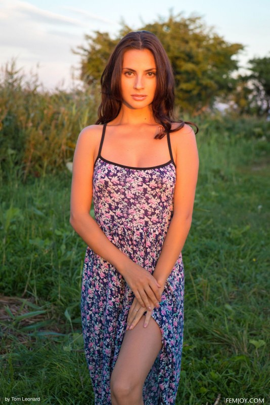 Скинув легкое летнее платье, сексапильная брюнетка с милым личиком и длинными густыми волосами, намочившись эротично позирует в озере. Располагаясь на большом камне, стройная красотка с маленькой грудью с радостью демонстрирует бритую щёлку с щетиной на лобке, а затем и упругую попку.