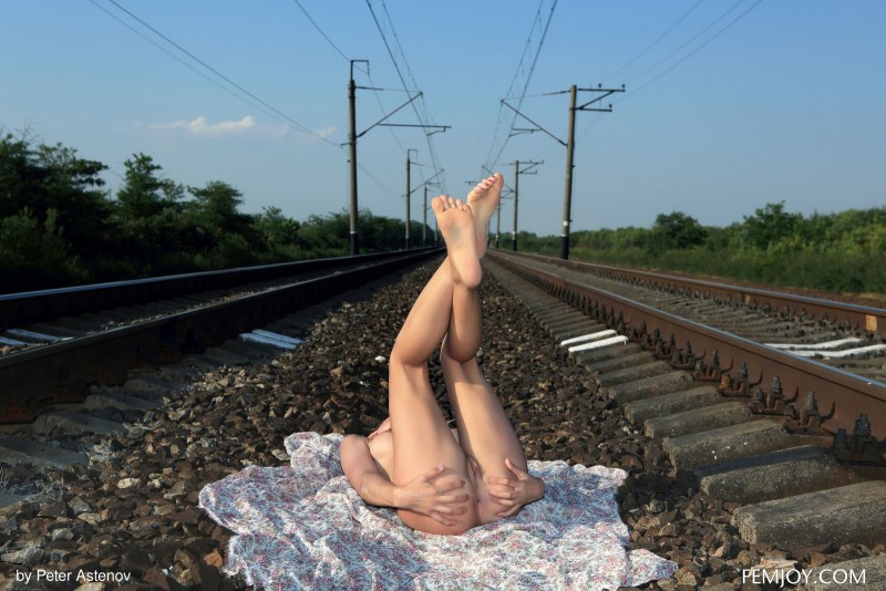 Выбравшись в неординарную локацию для эротических съёмок на железную дорогу, молодая и весьма симпатичная девка в коротких джинсовых шортах без лифчика игриво позирует и мило улыбается на камеру, широко раздвигая ножки на рельсах и шпалах. Совершенно освоившись в новом месте и раздевшись до гола, стройная красавица с наслаждением показывала бритую письку. а вместе с ней и аккуратную попку.