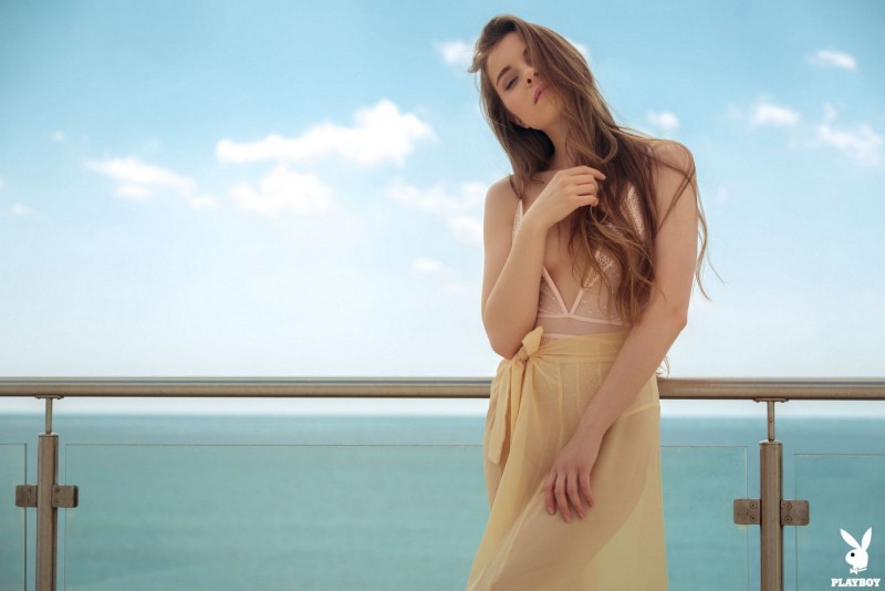 Выйдя на балкон и наслаждаясь летним морским бризом, сногсшибательная девушка с красивым телом в полупрозрачном боди эротично позирует и испытывает от этого неподдельное удовольствие. Вскоре после начала съёмки, сексуальная стройняшка с упругой грудью и идеальными сосками уселась на пол и показала нам письку с интимной прической.