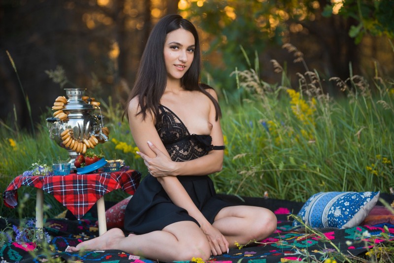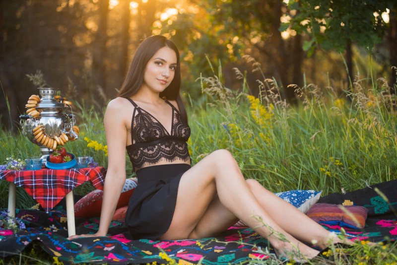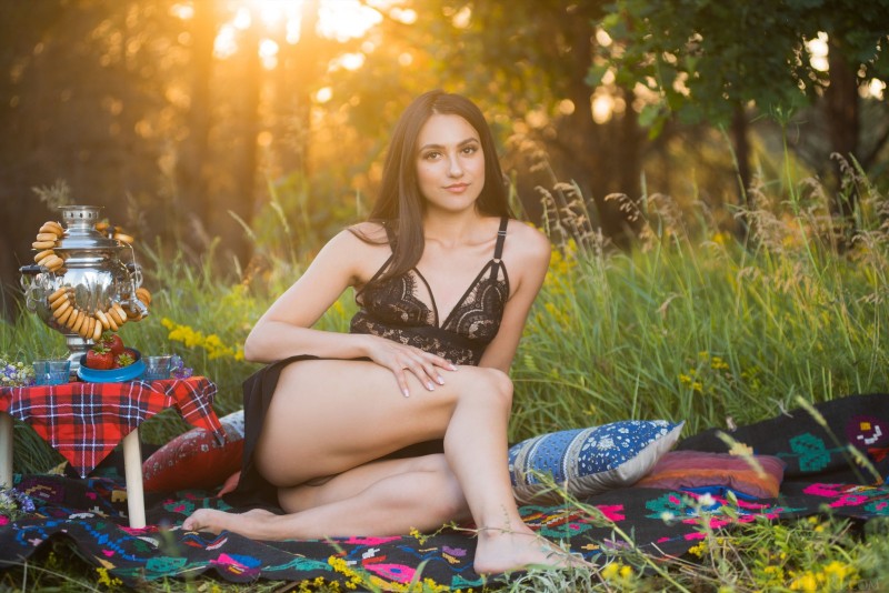 Устроив себе полноценный пикник на природе, милая голожопая девушка с упругими ягодицами, в сексуальном пеньюаре без трусиков, позируя перед нами принимает самые откровенные позы. В дальнейшем оголившись, сексуальная стройняшка с плоской грудью чаще всего старательно демонстрировала гладко выбритую письку.