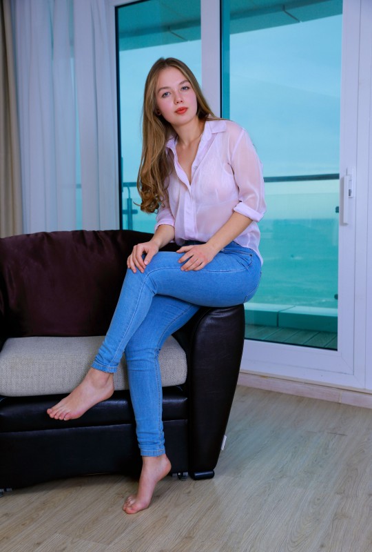 Улыбаясь в камеру и красиво позируя перед ней, привлекательная шатенка с шикарным сексуальным телом и пышными формами снимает с себя джинсы с блузкой, а затем и нижнее бельё. Устраиваясь голенькой на кресле, красотка с упругими сиськами раздвигает ноги и засвечивает бритую письку, а прогибаясь раком оттопыривает попку.