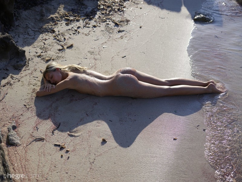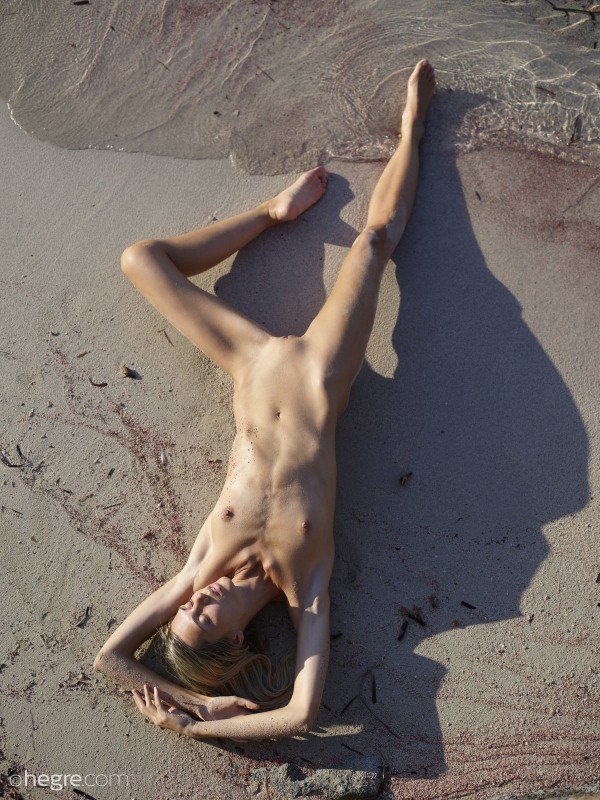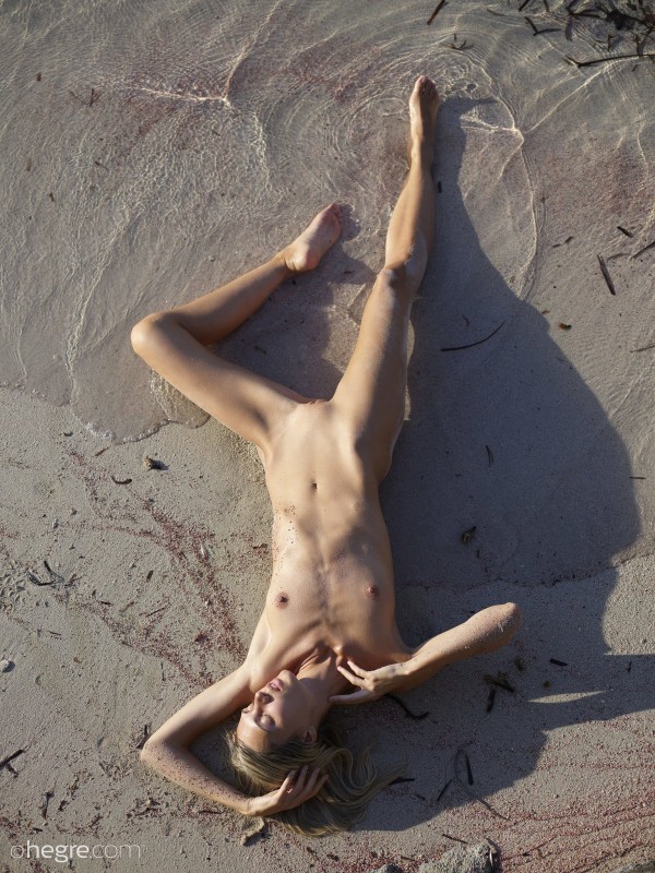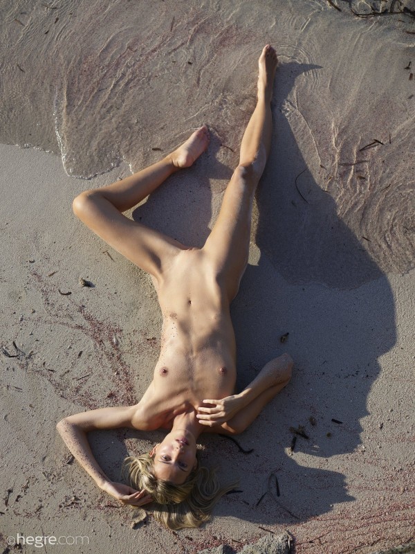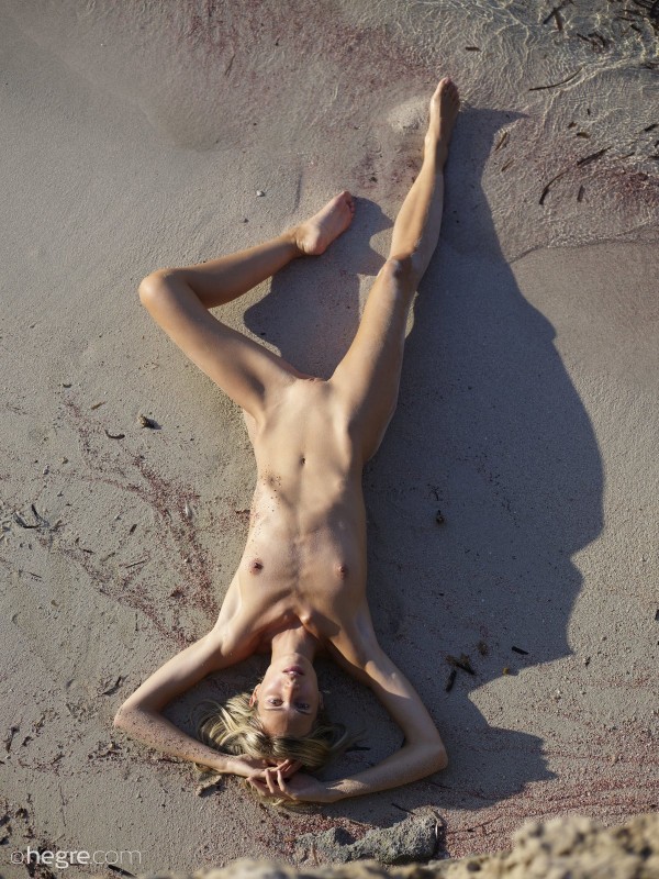 Привлекательная тощая девушка с пронзительным взглядом измазалась песком, с большим наслаждением позируя для нас на пляже. Получая от всего с ней происходящего сильное удовольствие, худышка с радостью демонстрировала нам плоские сиськи с торчащими сосочками и бритую письку с аккуратными упругими ягодицами.