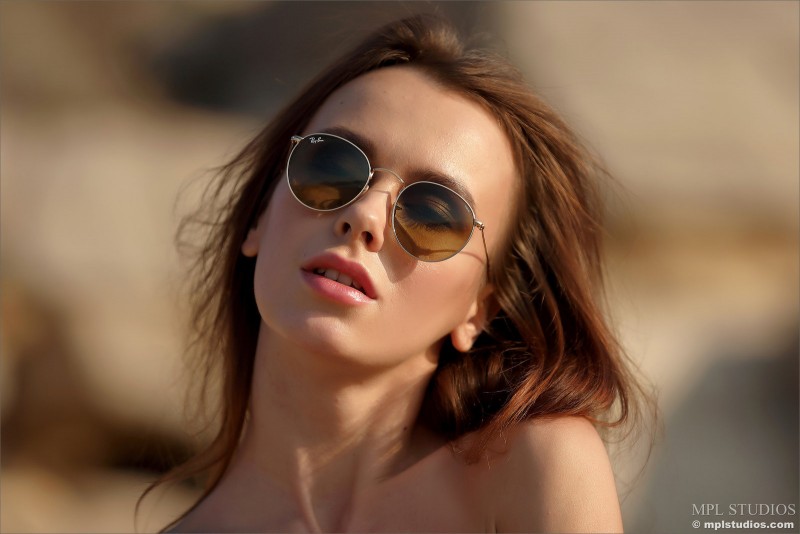 Начав эротично позировать среди скал, стройная девица в очках и коротком летнем платье в процессе чередует разные возбуждающие ракурсы и с радостью демонстрирует сексуальную бритую письку крупным планом. В дальнейшем полностью оголившись, молодая милашка продолжала показывать себя, делая акцент и на плоских сиськах.