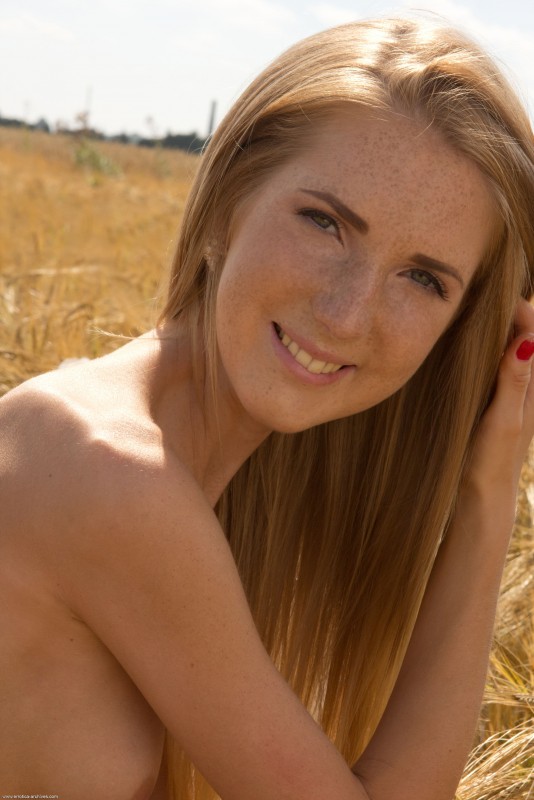 Выбравшись в поле и раздевшись там перед фотокамерой, тощая рыжая девушка с веснушками на смазливом личике с наслаждением позирует и мило улыбается. А что бы мы поставили ей оценки повыше, шалунья с маленькой грудью раздвигала промежность и крупным планом демонстрировала бритую письку с со сладкой щёлкой, одновременно с этим лаская себя.