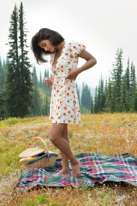 Выбравшись на пикник на природу, безумно красивая мулатка расположилась на расстеленном на траве покрывале и принялась эротично позировать, обнажаясь и голая продолжая красоваться перед фотографом. Очаровательная девушка с маленькой грудью часто присаживалась на корточки и позволяла нам рассмотреть её бритую письку с аккуратной интимной стрижкой.