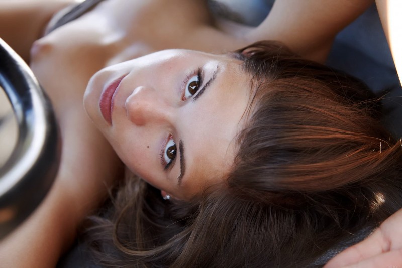Обнажая перед фотокамерой своё соблазнительное тело, сексуальная девица с голой бритой писькой обольстительно позирует в машине и крупным планом показывает нам манящую промежность. Красавица очень удобно улеглась на сиденьях, как бы приглашая нас заняться с ней горячим страстным сексом.