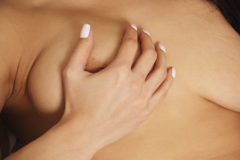 Сидя на диване, полностью голая девушка с сексуальным телом невероятно возбуждающе облизывает свои худенькие пальцы и параллельно этоиу ласкает натуральные сиськи с торчащими сосочками. Наслаждаясь всем происходящим, стройняшка порой так же широко раздвигала промежность и крупным планом показывала сладкую бритую письку.