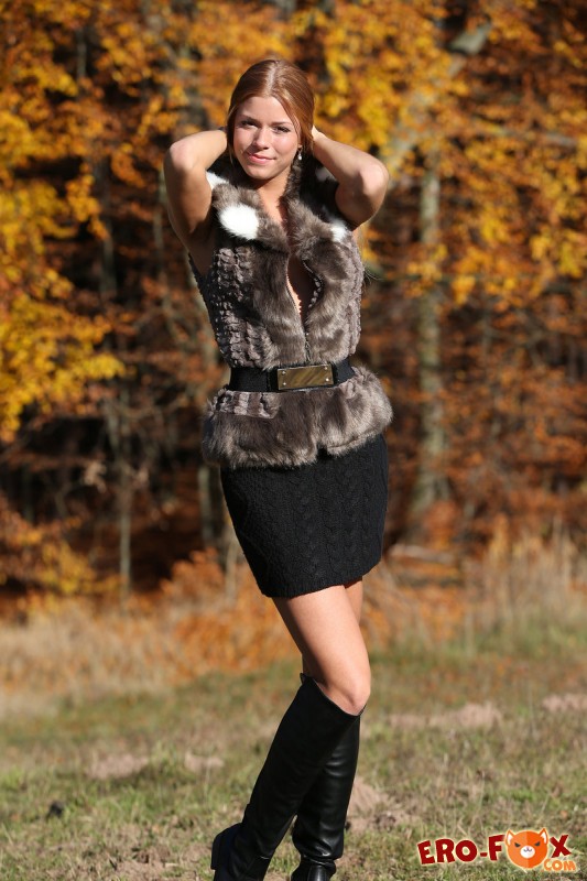 Эротика » Голые девушки » Голая рыжая девушка в осеннем лесу