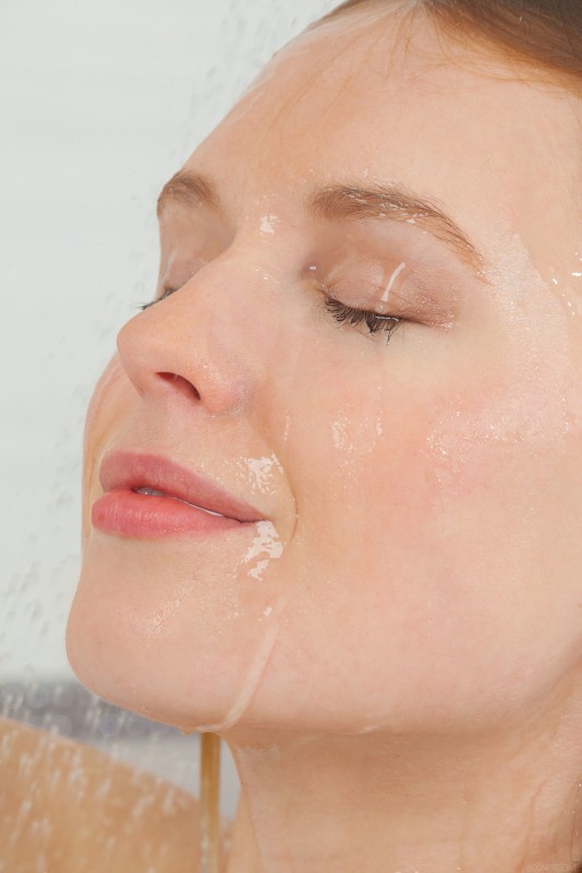 Симпатичная блондинка моется под душем сидя в ванной на коленках, позволяя нам понаблюдать за всем происходящим через объектив фотокамеры. Не обращая внимания на фотографа, сексуальная девушка с упругими сиськами погрузилась в свои фантазии, а обтирая своё тело полотенцем, она продемонстрировала нам свою попку с бритой писькой.