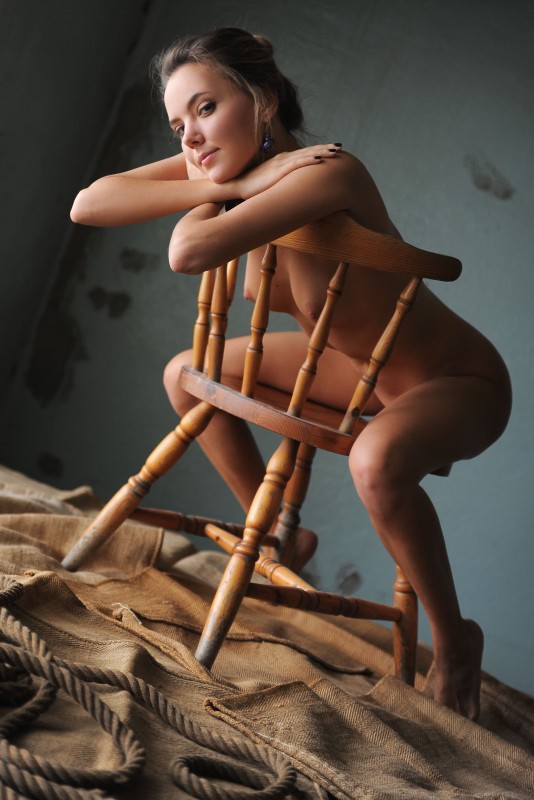 Эротика » Голые девушки » Голенькая девица поджимает коленки на стуле