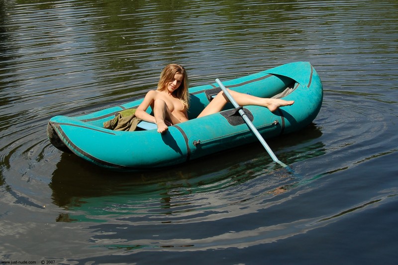 Забравшись в надувную лодку с вёслами, абсолютно голая милашка со светлыми локонами плавает недалеко от берега и показывает нам своё сексуальное тело. Вскоре стройная девушка с маленькой грудью выбралась из своего небольшого судна и стоя по коленки в воде заостряла наше внимание на её гладенькой письке с бритым лобком.