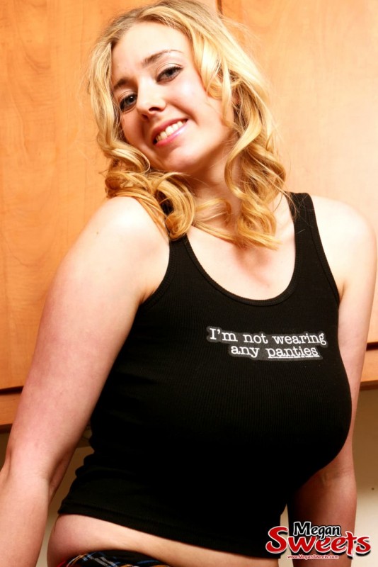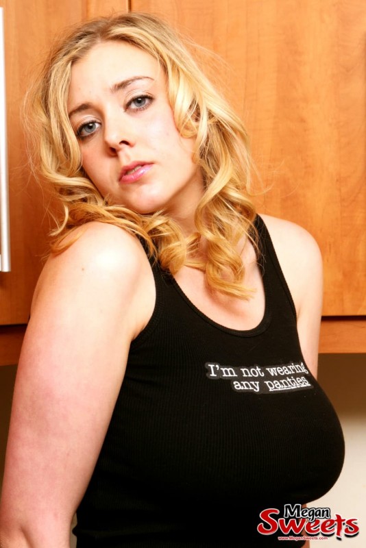 Эротика » Голые девушки » Сисястая блондинка развлекается на кухне
