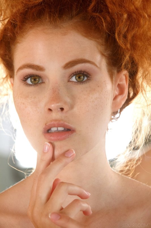 Обаятельная рыжая девушка раздевается и голая нежится на кровати. Красотка с густыми вьющимися волосами ярко-рыжего цвета смотрится очень соблазнительно и как бы зовёт нас прилечь рядом с ней. И желание такое действительно появляется, ведь разглядывая её упругую большую грудь, подтянутую попку с красивыми ягодицами, бритую розовую киску и другие прелести ни о чём другом думать уже не можешь. Лишь о этой соблазнительной рыжей чертовке, которую было бы не плохо обласкать прямо в этой кровати!