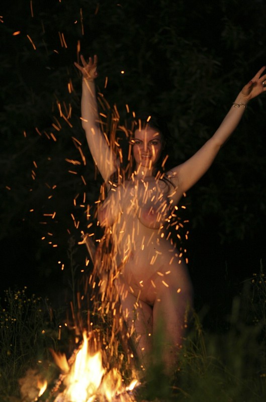 Эротика » Голые девушки » Голая баба танцует у огня в лесу ночью