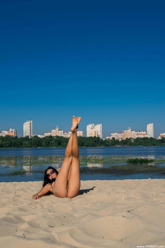 Выехав за город на озеро, голая брюнетка с красивой бритой писькой развлекается на пляже. Молодая девица с наслаждением плавает в прохладной воде, а затем выходит на берег и греет свое влажное стройное тело на горячем песке, подставляя под солнечные лучи свои маленькие упругие титечки и аппетитную сочную задницу.