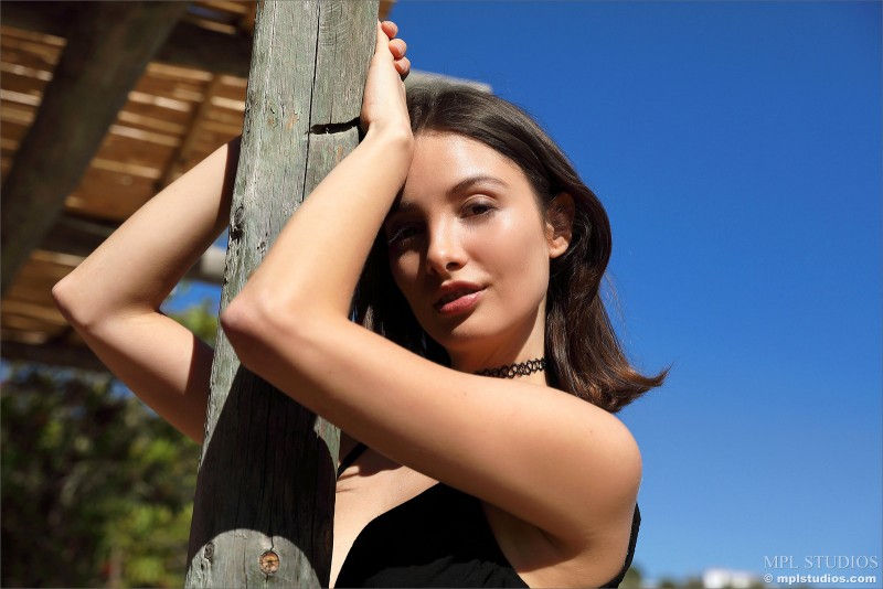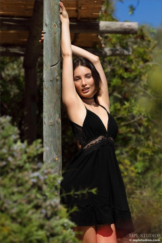 Вдали от городского шума на своей даче отдыхает длинноногая телка с сочной задницей под коротким платьем, которая только и ждет момента раздеться до гола в такую жару и позагорать. Красивая брюнетка с упругими сиськами вытянулась на земле всем свои стройным сексуальным телом и расслабленно наслаждается выходными.