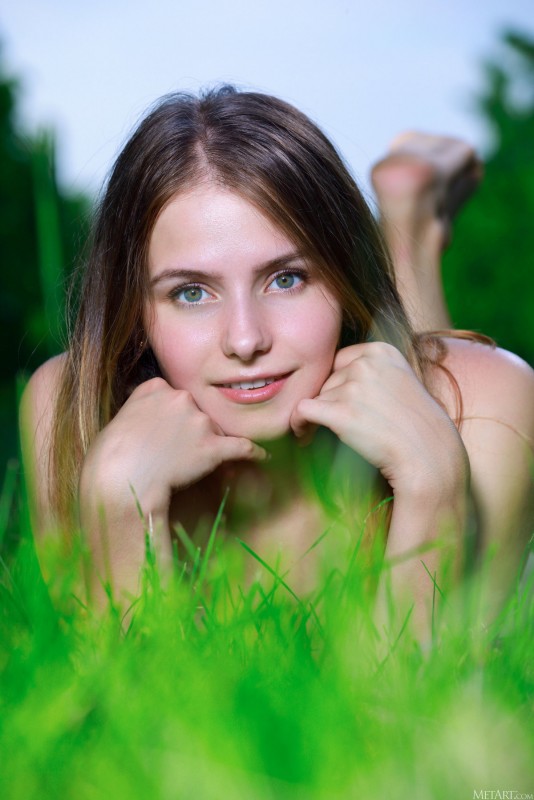 Эротика » Голые девушки » Голая девушка с сочными сосками прячется в саду