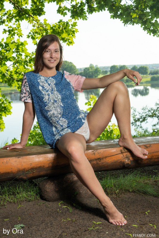 Прогуливаясь в лесу, деревенская девушка с готовностью разделась до гола на природе, подставляя свое горячее стройное тело прохладному ветерку. Молодая девица развратно разлеглась на большом бревне и подставила свою аппетитную попку и бритую письку под объектив камеры.