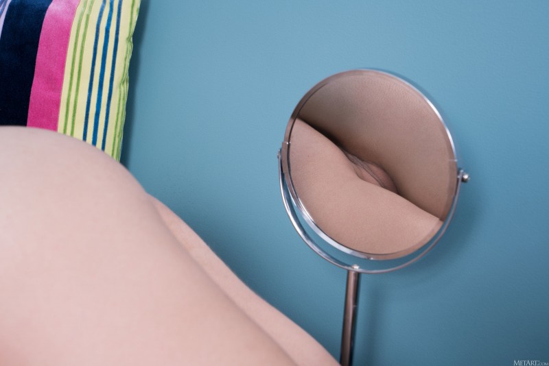 Сняв с себя кружевное белье, голая красавица любуется своими упругими натуральными титьками с розовыми сосками в зеркале. Молодая брюнетка с соблазнительной фигуркой показывает через маленькое зеркальце свою аппетитную нежную попку и бритую пухлую письку.