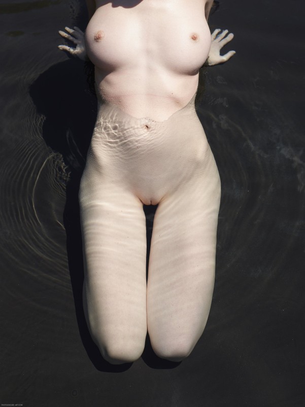 На берегу небольшого пруда голая девушка расслабленно позирует в прохладной воде, показывая свои нежные возбуждающие прелести на камеру. Молодая красавица томно принимает несколько простых поз и открыто демонстрирует свое бледное тело с красивыми упругими титечками.
