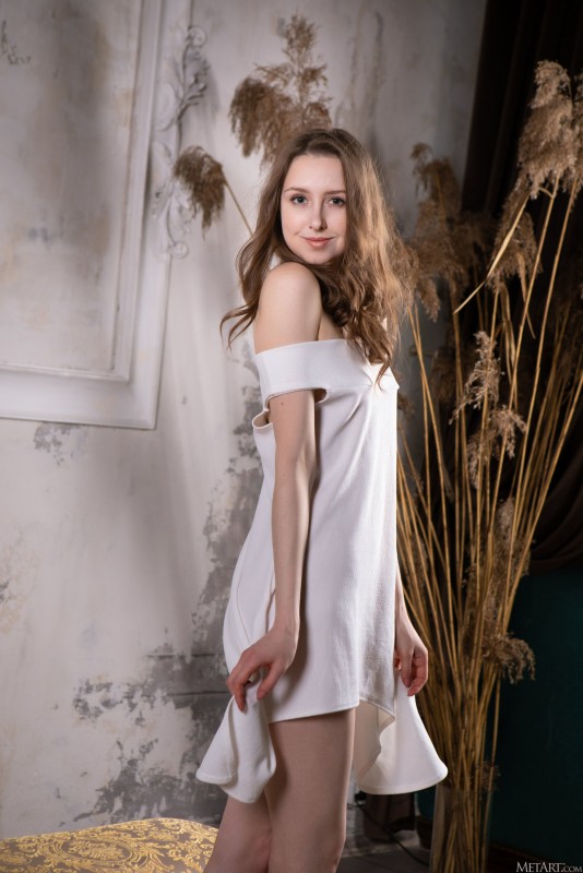 Медленно сняв свое короткое платье, длинноногая брюнетка без трусиков эротично продемонстрировала на камеру свою голую промежность с подстриженным лобком. Чувственная девушка с маленькими сиськами красиво позирует, принимая множество откровенных эротичных поз.