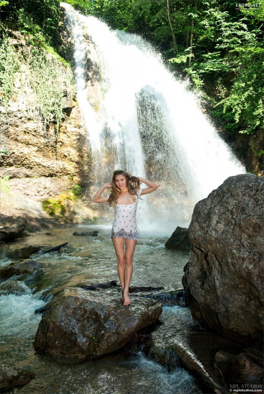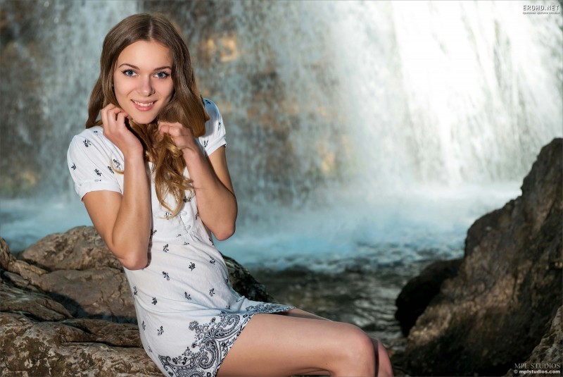 Игриво задрав короткое платье перед камерой, молодая девушка без трусиков без стеснения раздвинула свои длинные стройные ноги. Красивая детка с маленькими сиськами на фоне большого водопада поменяла множество эротических поз и открыто показала нам свою упругую попку и гладкую сладкую письку.
