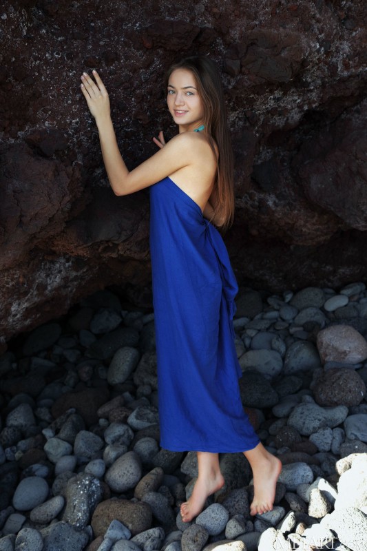 Спрятавшись в укромном месте и сорвав со своего тела большой легкий платок, молодая девушка оголила на камеру свою маленькую упругую попку. Обнаженная красавица легла на камни и с широко раздвинутыми ножками развратно показывает с разных ракурсов свою голую промежность с бритой сочной киской.