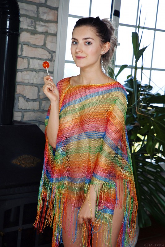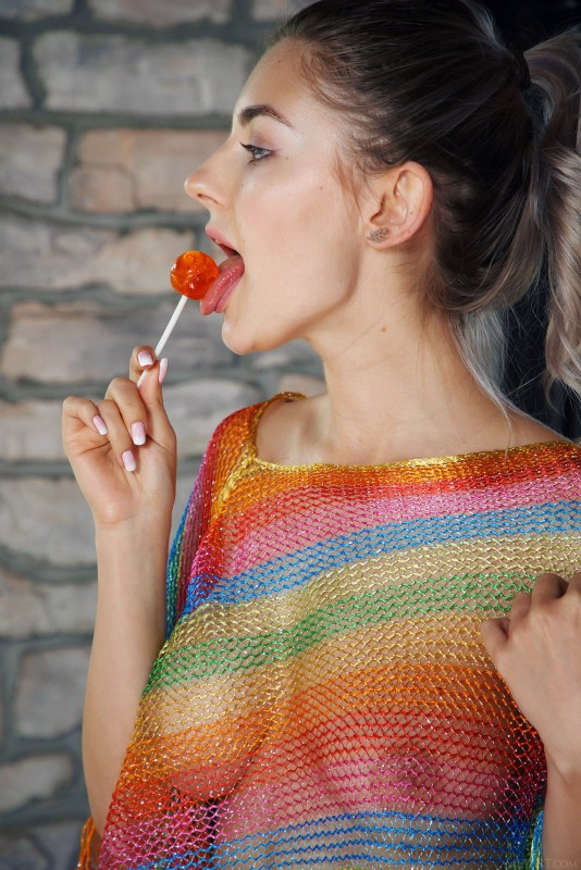 Развратно облизывая сладкую конфету, похотливая девица медленно разделась до гола и трясет перед камерой своими большими натуральными сиськами. Лежа на диване, сисястая кокетка возбуждающе ласкает свое сексуальное молодое тело и выставляет на показ голую бритую промежность и