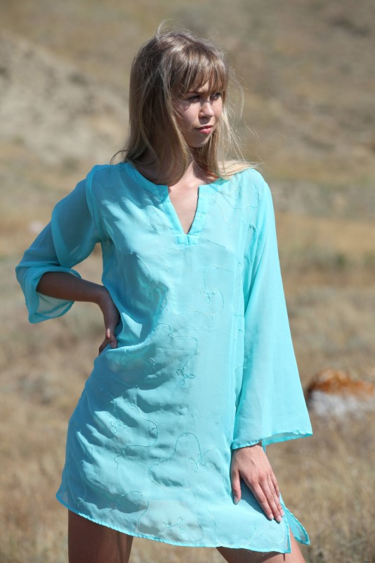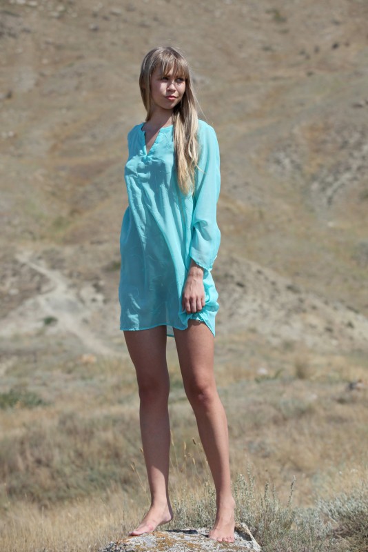 Одетая в легкое летнее платье, русая простушка без трусов эротично позирует на природе, игриво засвечивая свои прелести. Раздевшись до гола, молодая девица с маленькими титечками садится на землю и с раздвинутыми ногами показывает на камеру крупным планом бритую промежность с аккуратной сладкой киской.