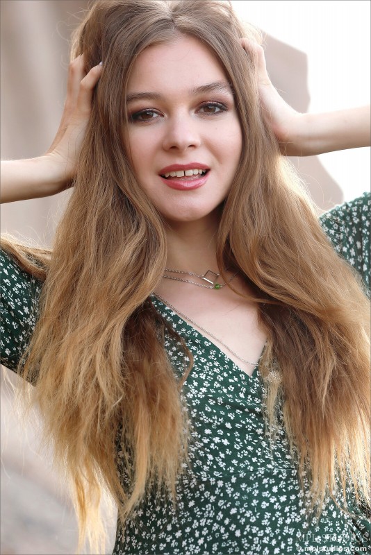 Позируя на фоне природы, молодая девушка в коротком платье без трусиков игриво задрала юбку и показала свою гладкую аккуратную киску. Соблазнительно извивая всем тело в разных откровенных позах, голая шатенка с упругими титечками соблазнительно виляет аппетитной попкой и стройными бедрами.
