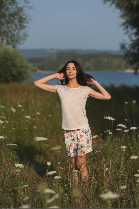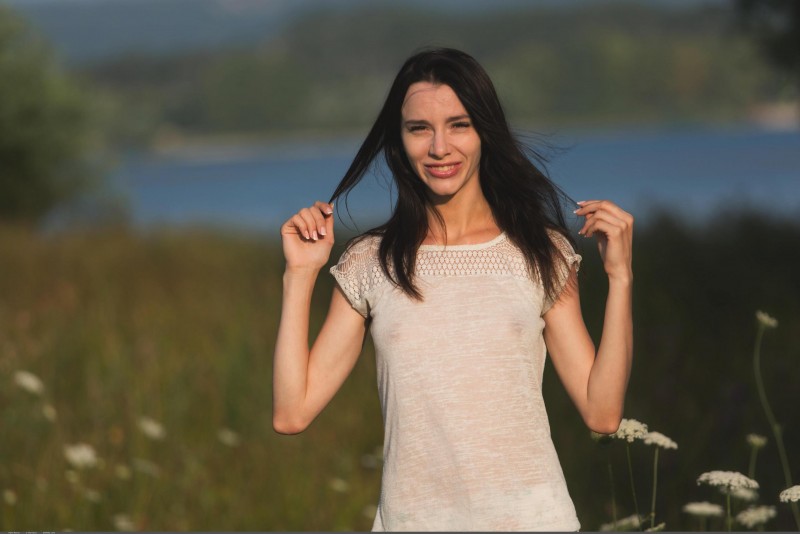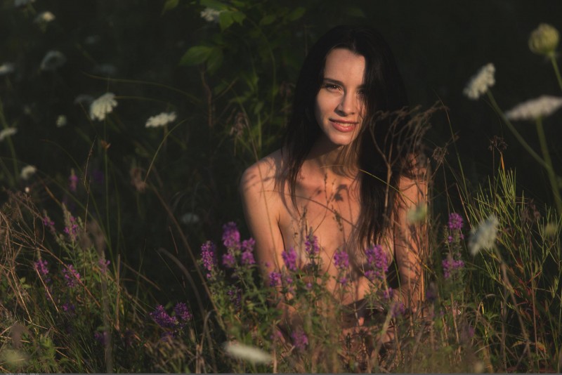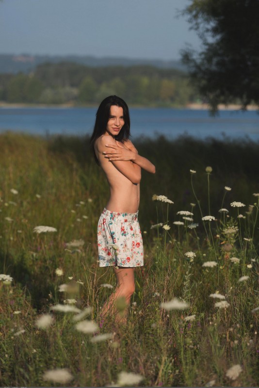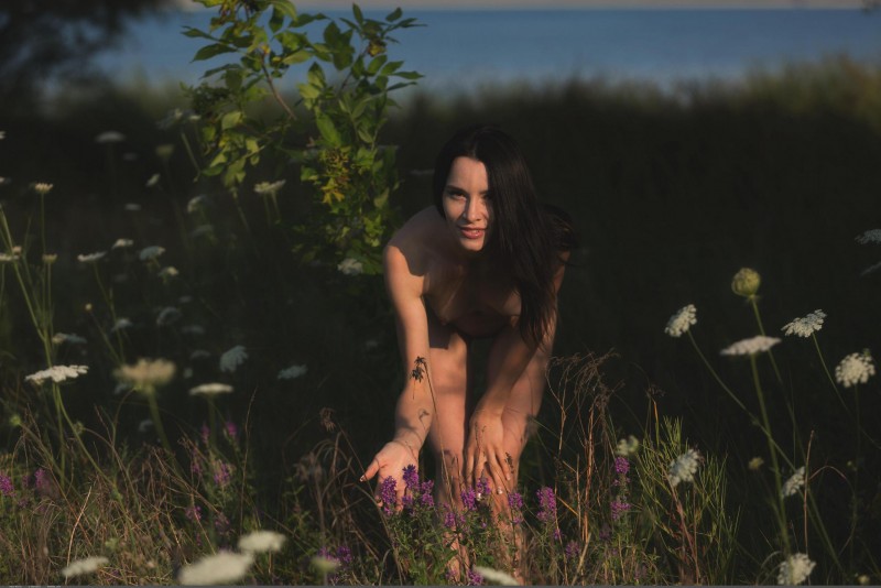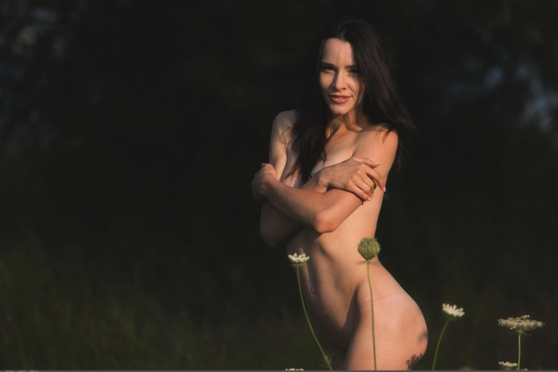 Эротика » Голые девушки » Брюнетка гуляет голая на природе