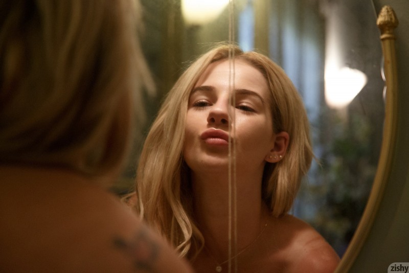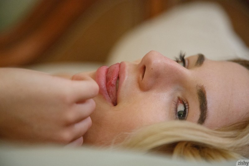 Приготовившись ко сну, молодая девица в прозрачных розовых трусах снимает с себя легкий пеньюар и чувственно позирует в большой постели. Обнаженная блондиночка вовсю светит перед камерой своими миниатюрными титечками и эротично изгибается в спине, выпятив упругую аппетитную попку.