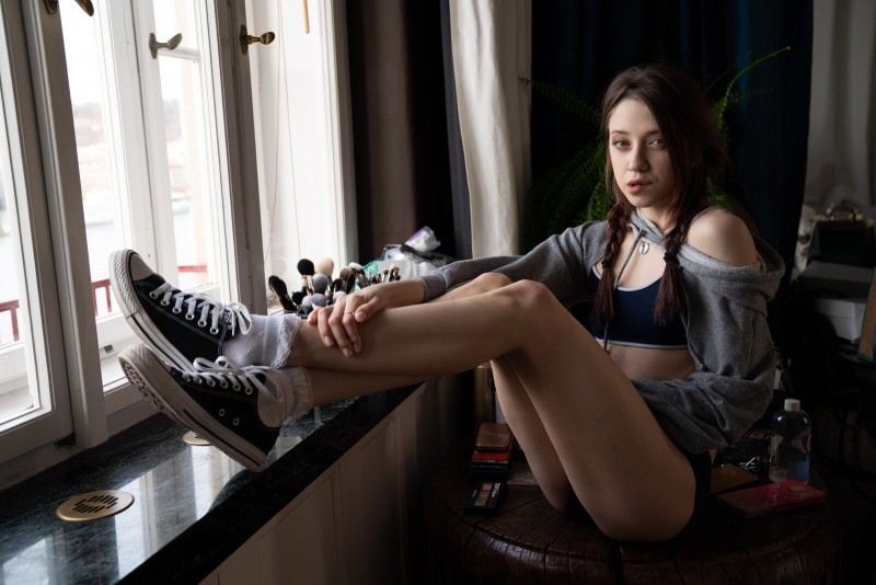 Эротика » Голые девушки » Молодая детка засветила бритую киску