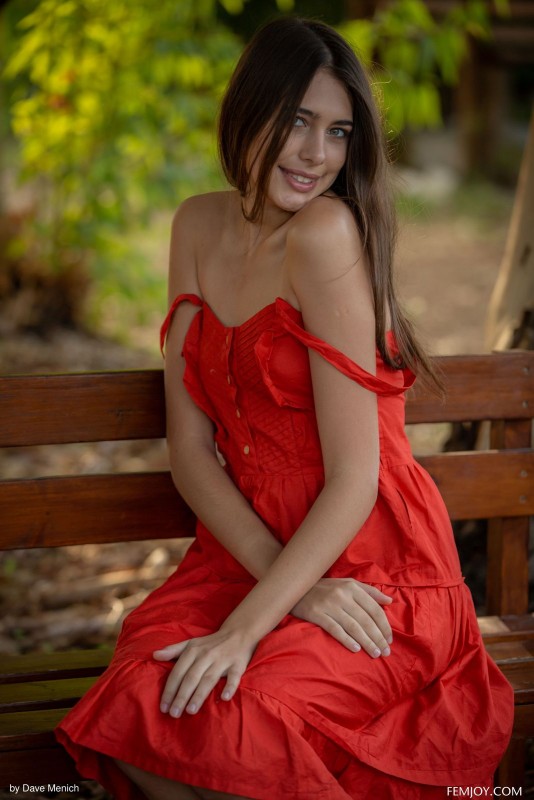 Соблазнительно медленно стянув с себя красное платье без трусиков, молодая извращенка бесстыже разделась до гола в городском парке. Голая девица с миниатюрными сиськами садится на лавочку и в разных откровенных позах принялась показывать нам свою бритую промежность с аккуратной маленькой писькой.