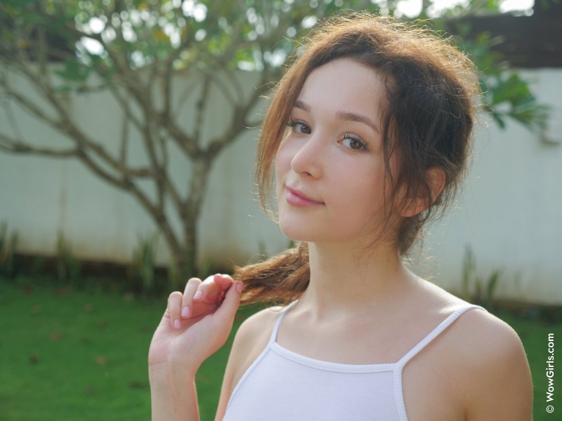 Эротично позируя на заднем дворе дома, милая детка с миниатюрными титьками медленно начала раздеваться перед камерой. Обнаженная очаровательная девушка не стесняется показать себя во всей красе и, игриво флиртуя на камеру, развратно виляет упругой попкой, засвечивая между аппетитными ягодицами свою гладкую сладкую киску.